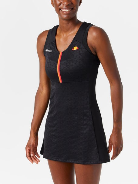 Finish your points with confident style in the Ellesse Women's Tregirls Dress. It features a subtle jacquard knit on the front, a stripe tape accent down the front bodice, ribbing on the armholes, moisture wicking performance, and Ellesse logos on the right and left chest.