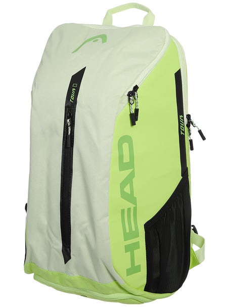 The Head Tour Team Tennis Backpack is a solid option to carry your essentials. With a specific padded compartment, this backpack will hold up to two racquets with a handle cover large enough for 2 grips with zippers that will stay in place when in motion. One main compartment will hold the rest of your gear while there is a small accessory pocket on the front for grips and dampeners. The bottom of the backpack has a shoe tunnel while the sides feature an elastic pocket perfect for balls or water bottles.