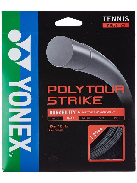 With its surgical control Poly Tour Strike will enable you to execute your most powerful strokes without fear of overhitting. The result is extra confidence when loading the ball with pace and spin. Durability is also impressive, making this a good option for string breakers.